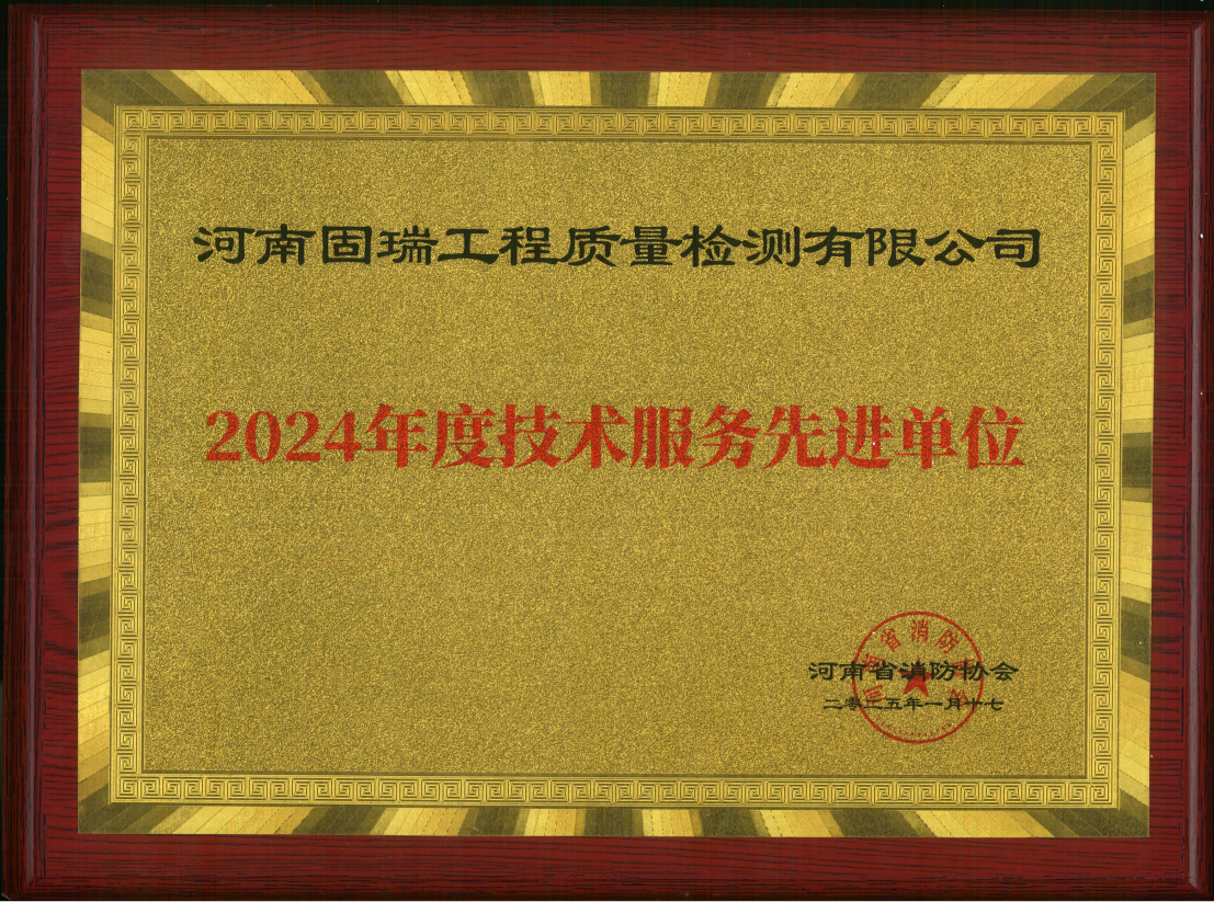 熱烈祝賀河南固瑞工程質量檢測有限公司榮獲河南省消防協(xié)會2024年度技術服務先進單位!?。?